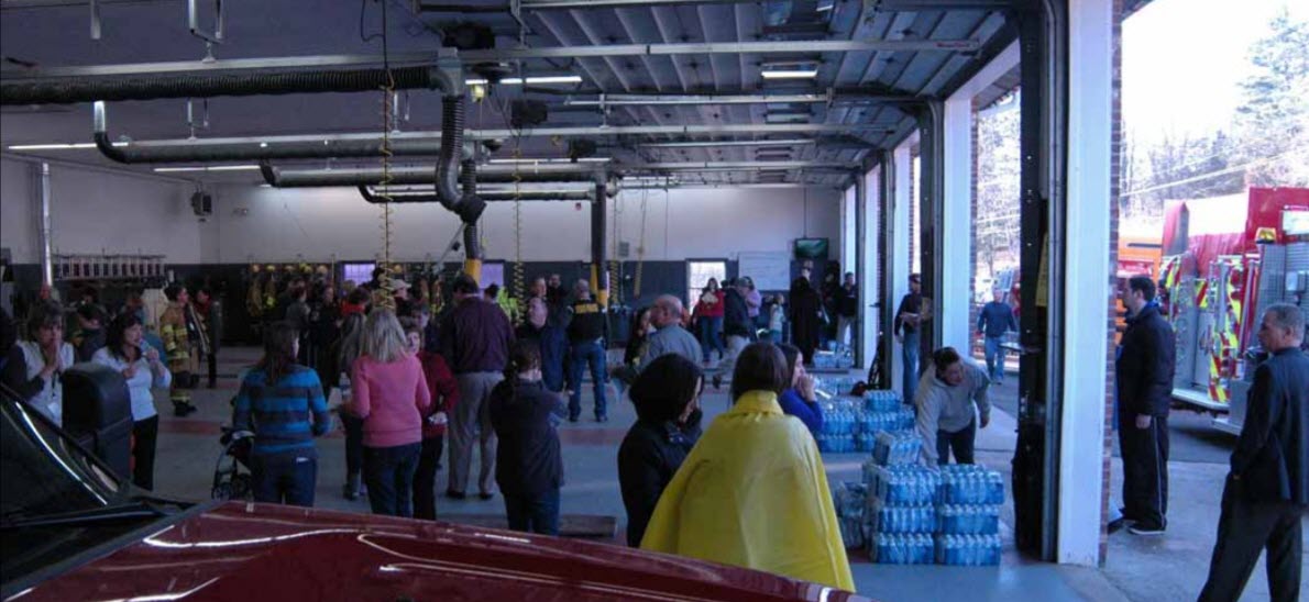 The demand for a single photo showing all 456 students together is entirely unrealistic and disregards the logistical reality of the evacuation. Children were led out of the school in stages, room by room, then brought to the firehouse, where they were reunited with their parents in an orderly but understandably chaotic process. The likelihood of a single photo capturing every child is essentially zero. However, Sandy Hook Facts has compiled several photos from that day showing groups of children being evacuated and some shots from the firehouse where many children and their families gathered. Here’s one of those images, capturing a group of children and parents at the firehouse: